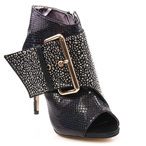 Exquisite fashion and style to treat yourself with this chic high fashion peep toe court shoes. These stunning court shoes are adorned with sequins and diamante while stiletto heel is perfect to carry for part or evening out. Style No: L24634 Colour: Black